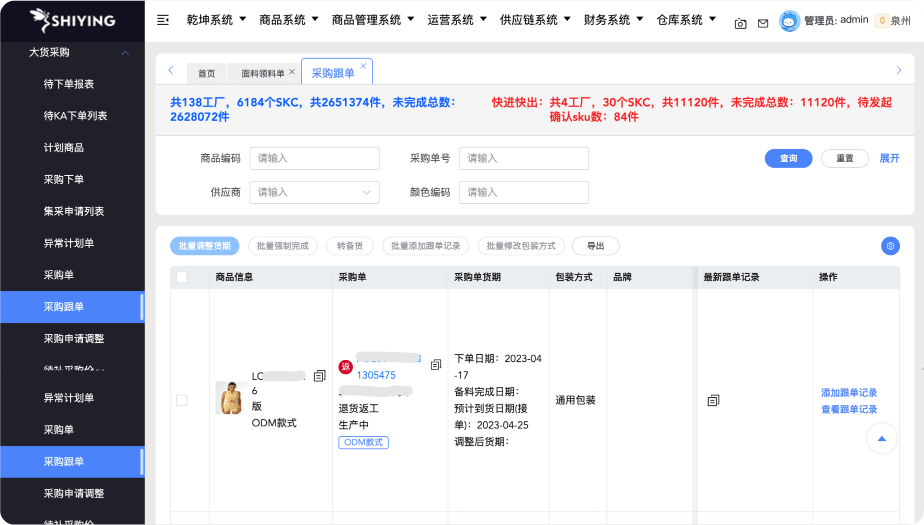 实时监控查看采购订单执行情况,发货,退货一目了然
