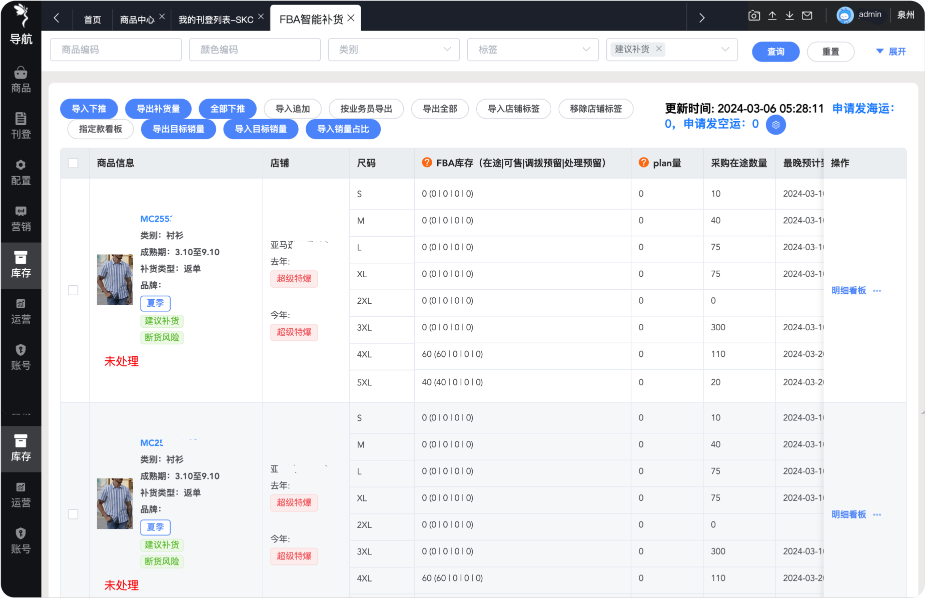 建立FBA短单补货模型,预测断货,建议合理补货量和物流方式